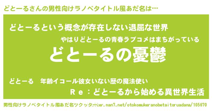 | 女子向けラノベタイトル風あだ名 | 『どとーる姫と円卓の騎士』 |