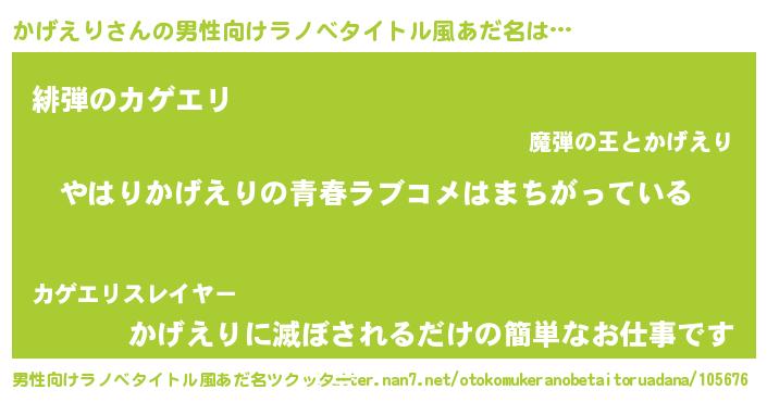 | 意味不明あだ名 | 『かげえりフォーエバー』 |