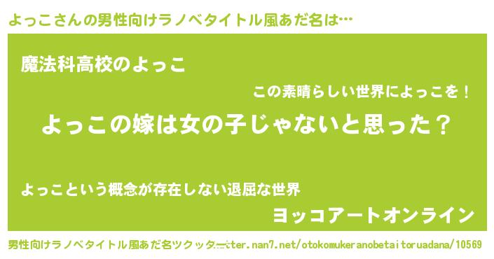 | 女子向けラノベタイトル風あだ名 | 『よっこ様がみてる』 |
