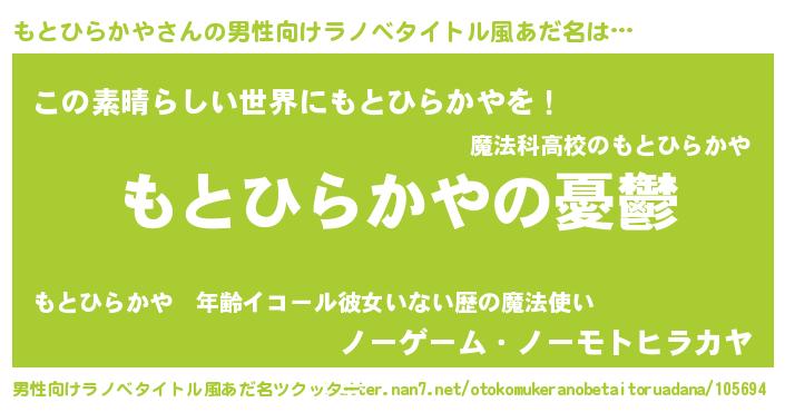 | 胡散臭い通販商品みたいなあだ名 | 『必ず成功するブレスレット…その名も「もとひらかや」』 |