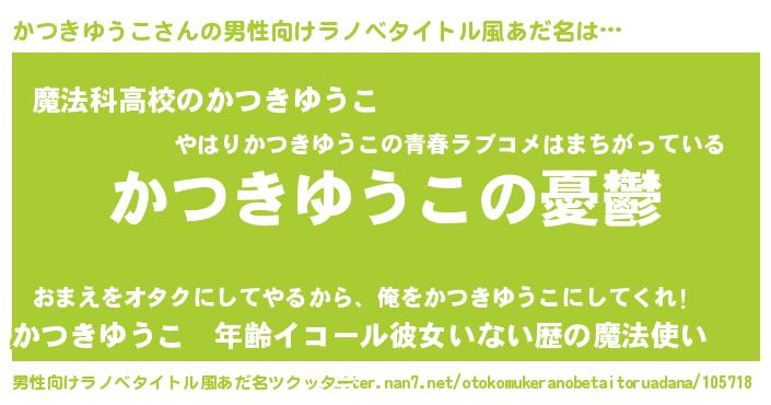 | 女子向けラノベタイトル風あだ名 | 『(仮)かつきゆうこのやんごとなき事情』 |