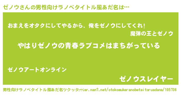 | 意味不明あだ名 | 『ゼノウフォーエバー』『ペロリンゼノウ』 |