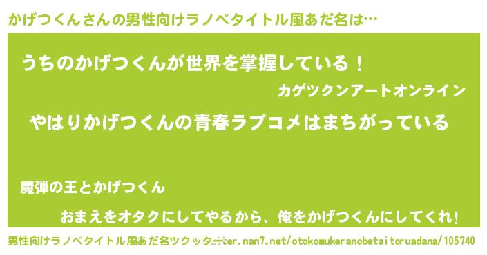 | 女子向けラノベタイトル風あだ名 | 『かげつくんの雑貨屋さん』 |