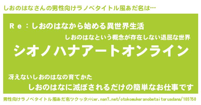 | 意味不明あだ名 | 『ペロリンしおのはな』『自称しおのはな』 |