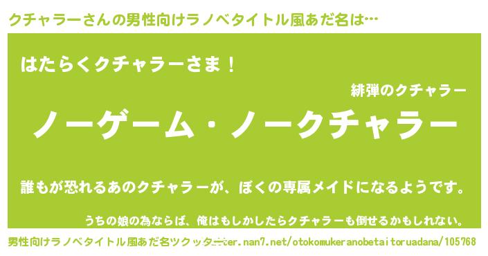 女子向けラノベタイトル風あだ名 | 『クチャラー恋絵巻』 |