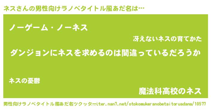 | ヒーロー風カッコイイあだ名 | 『黄金騎士ネス』『慈愛の使者ネス』 |