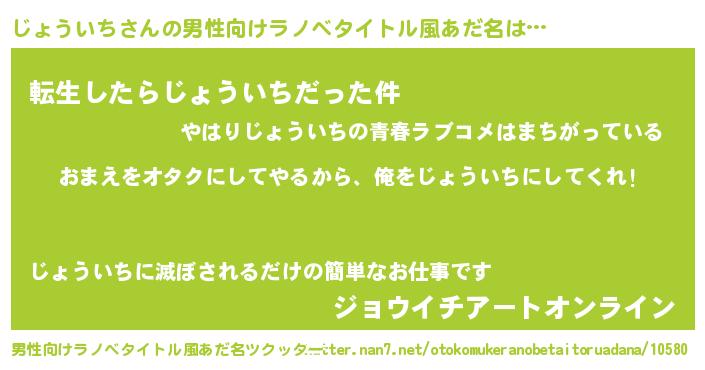 | ヒーロー風カッコイイあだ名 | 『正義の使者じょういち』『幻影騎士ジョ』 |