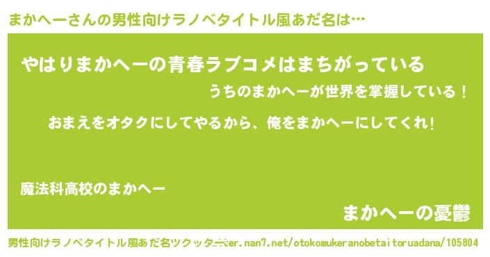 | 胡散臭い通販商品みたいなあだ名 | 『お金では代えられないマグネット磁石…その名も「まかへー」』 |