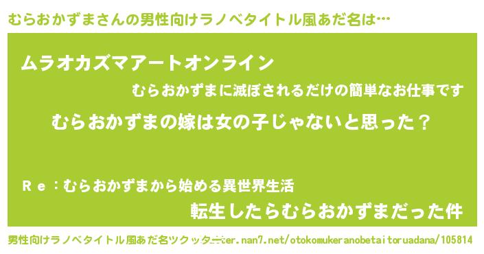 | 女子向けラノベタイトル風あだ名 | 『むらおかずまの卵を拾いまして』 |