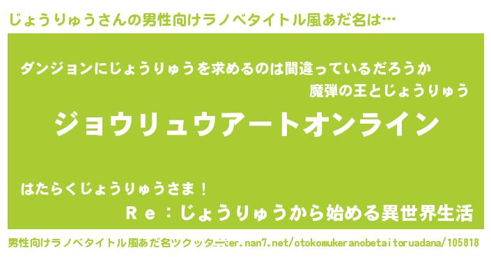 | 胡散臭い通販商品みたいなあだ名 | 『モテモテ間違いなしブレスレット…その名も「じょうりゅう」』 |