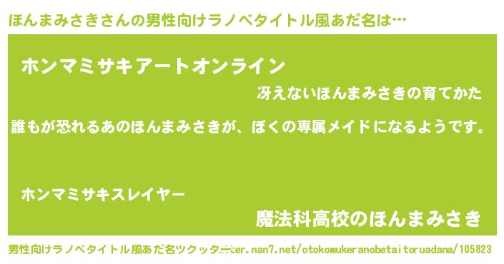 | 女子向けラノベタイトル風あだ名 | 『異世界でカフェほんまみさきを開店しました。』 |