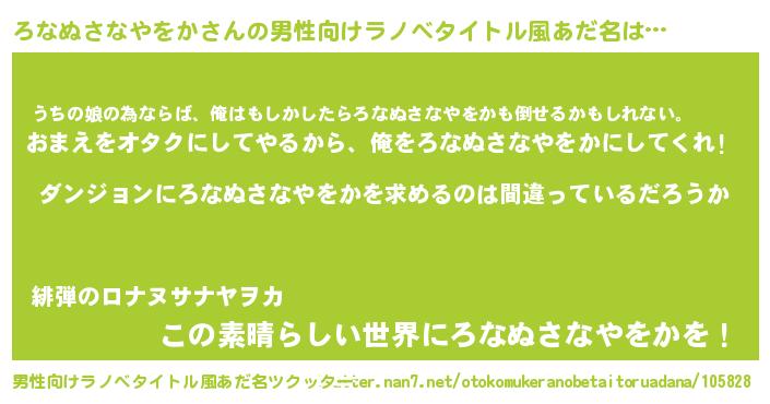 | 胡散臭い通販商品みたいなあだ名 | 『信頼と実績のネックレス…その名も「ろなぬさなやをか」』 |