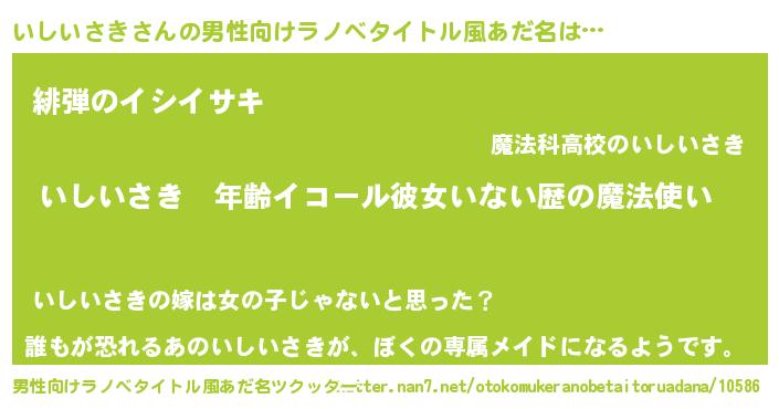 | 女子向けラノベタイトル風あだ名 | 『いしいさきの玉の輿計画!』 |