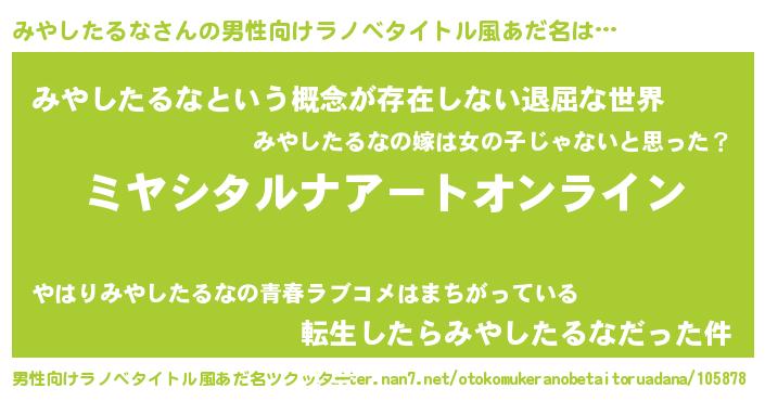 | 胡散臭い通販商品みたいなあだ名 | 『億万長者になれるブレスレット…その名も「みやしたるな」』 |