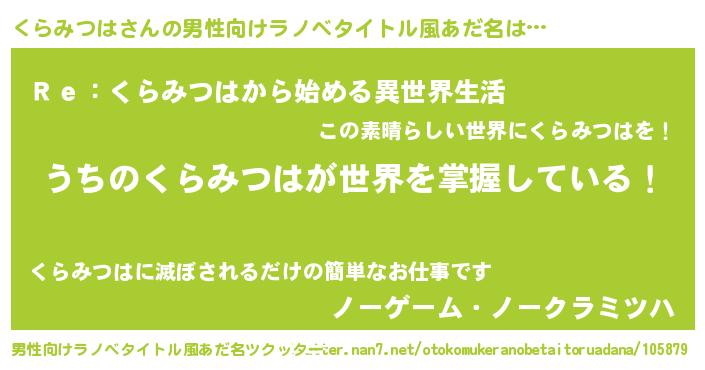 | 意味不明あだ名 | 『自称くらみつは』『ペロリンくらみつは』 |