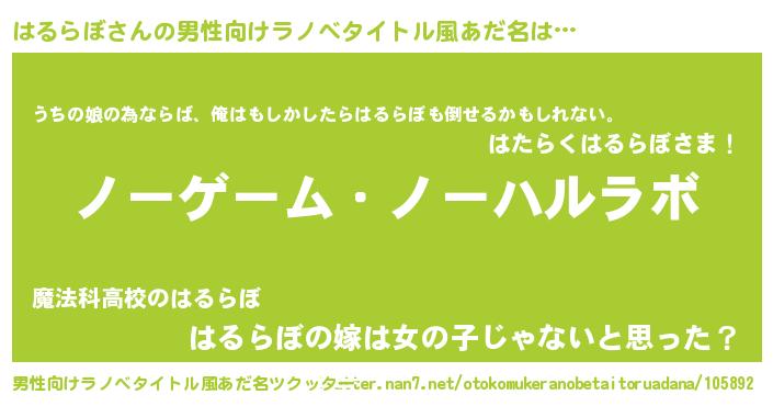 | 女子向けラノベタイトル風あだ名 | 『はるらぼ恋絵巻』『はるらぼの婚約者』 |