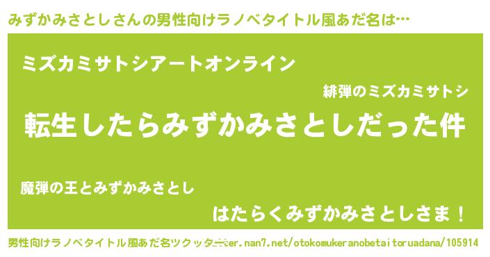 | 胡散臭い通販商品みたいなあだ名 | 『モテモテ間違いなし霊験あらたかなお札…その名も「みずかみさとし」』 |