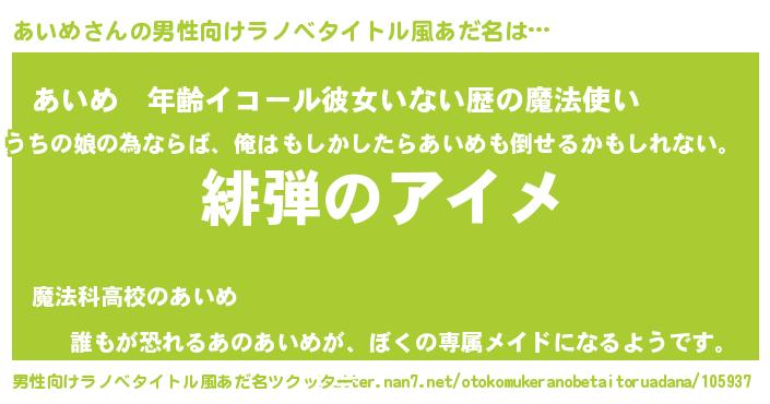 | 女子向けラノベタイトル風あだ名 | 『シンデレラあいめ家の靴箱館』 |