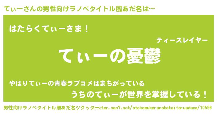 | 胡散臭い通販商品みたいなあだ名 | 『モテモテ間違いなし霊験あらたかなお札…その名も「てぃー」』 |