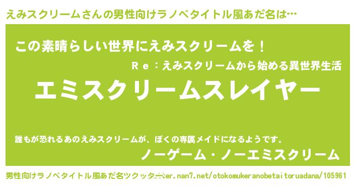 | ヒーロー風カッコイイあだ名 | 『仮面エミダー』『ネオエミスクリーム』 |