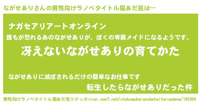 | 胡散臭い通販商品みたいなあだ名 | 『モテモテ間違いなし霊験あらたかなお札…その名も「ながせあり」』 |