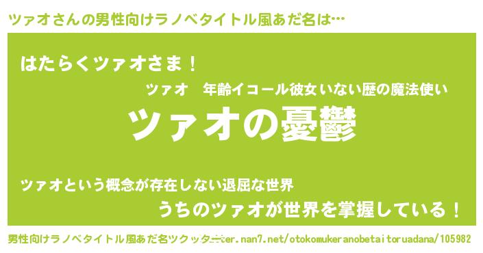 ツァオさんの男性向けラノベタイトル風あだ名をツクッター!