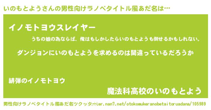 | 女子向けラノベタイトル風あだ名 | 『いのもとようは平凡を望む』 |