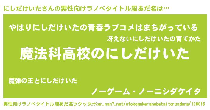 | 意味不明あだ名 | 『自称にしだけいた』 |