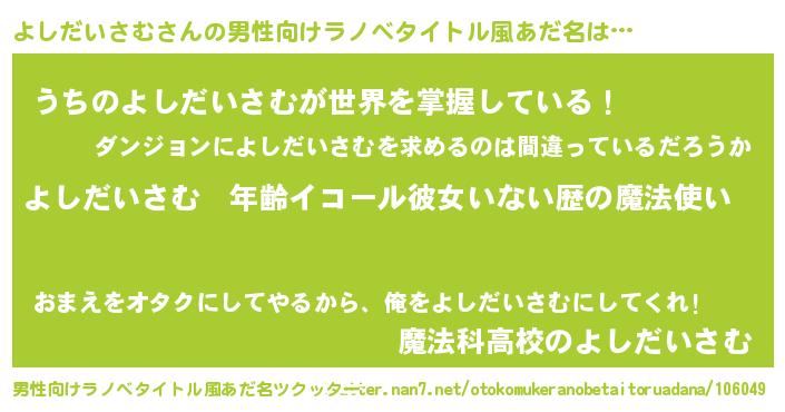 | ヒーロー風カッコイイあだ名 | 『最強戦士ヨシダイサム』『黄金騎士ヨシ』 |