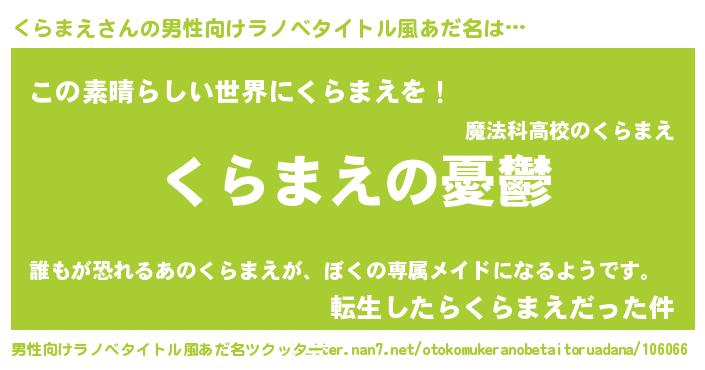 | ヘコむあだ名 | 『くらもー』『くらまえ(遠い目)』 |