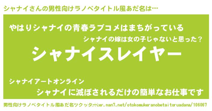 | 胡散臭い通販商品みたいなあだ名 | 『幸せが訪れる高級そうな絵画…その名も「シャナイ」』 |