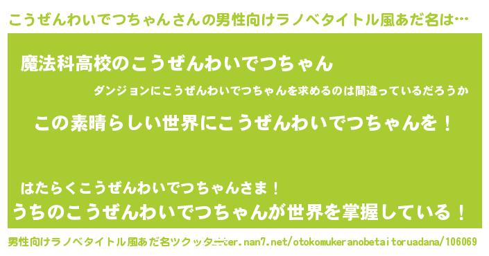 | 女子向けラノベタイトル風あだ名 | 『悪役こうぜんわいでつちゃんに転生したようですが、知った事ではありません』 |