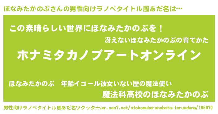 | ヘコむあだ名 | 『ほなにゅー』『ほなみたかのぶ(遠い目)』 |