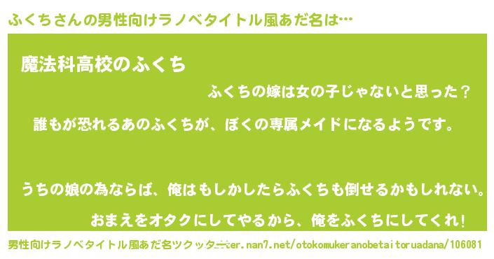 | ヘコむあだ名 | 『ふくち(遠い目)』『ふくっちょ』 |