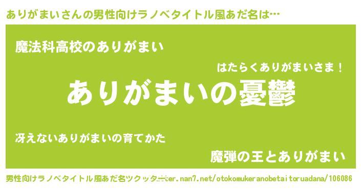 | 女子向けラノベタイトル風あだ名 | 『(仮)ありがまいのやんごとなき事情』 |