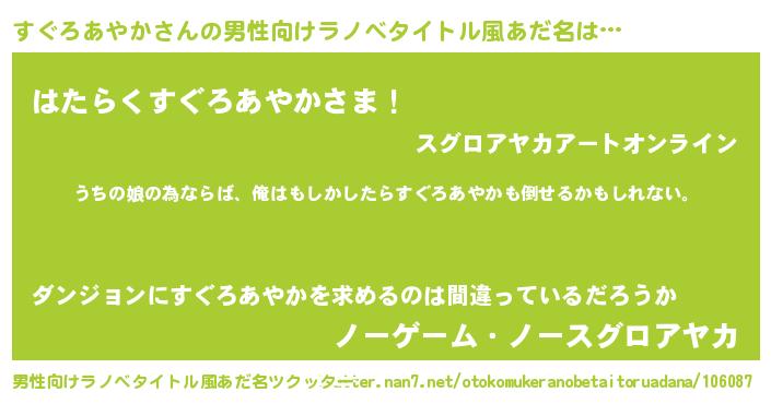 | 女子向けラノベタイトル風あだ名 | 『すぐろあやかの婚約者』 |