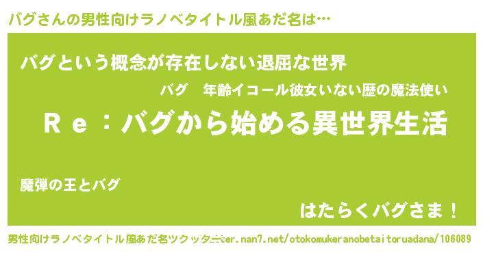 | 意味不明あだ名 | 『自称バグ』『永久保存バグ』 |