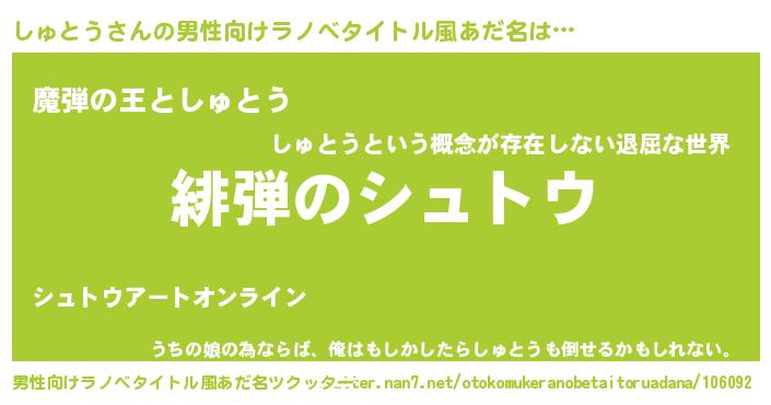 | ヒーロー風カッコイイあだ名 | 『仮面シュダー』『ウルトラしゅとうマン』 |
