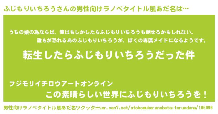ふじもりいちろうさんの男性向けラノベタイトル風あだ名をツクッター!