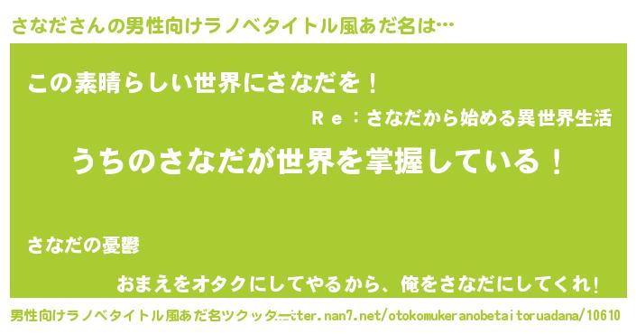 | 女子向けラノベタイトル風あだ名 | 『男装さなだの憂鬱な任務』『闇のさなだ』 |