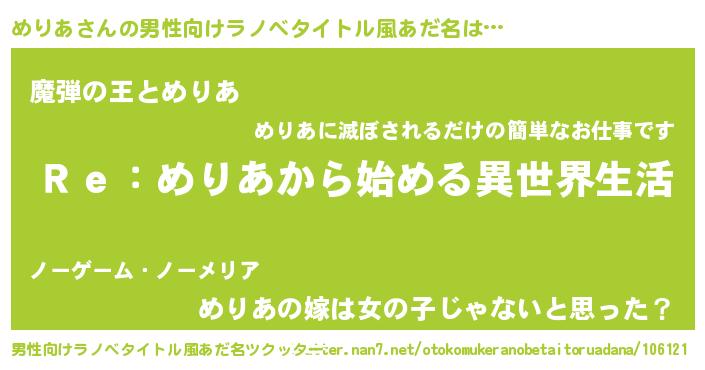 | 胡散臭い通販商品みたいなあだ名 | 『テレビで話題のアガリクス…その名も「めりあ」』 |