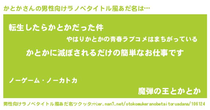 | 女子向けラノベタイトル風あだ名 | 『横柄かとかと宰相陛下』『かとか恋絵巻』 |