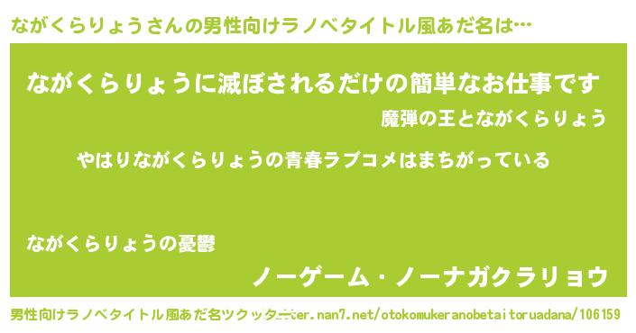 | 女子向けラノベタイトル風あだ名 | 『ながくらりょうの雑貨屋さん』 |
