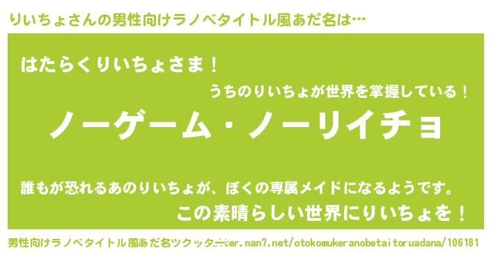 | 伝説のあだ名 | 『魔王と互角に渡り合う技術者りいちょ』 |
