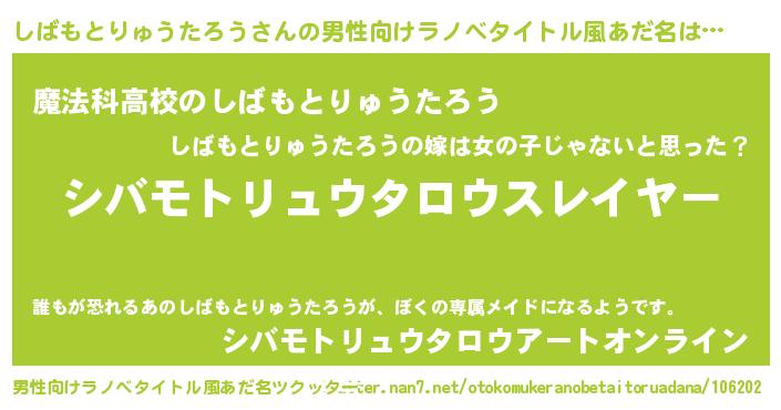 | 肩書あだ名 | 『しばもとりゅうたろう中尉』 |