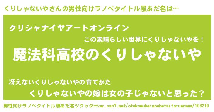 | 意味不明あだ名 | 『自称くりしゃないや』 |