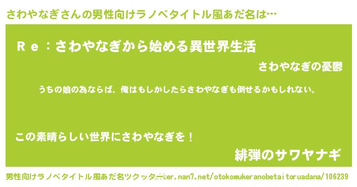 | 女子向けラノベタイトル風あだ名 | 『さわやなぎの婚約者』 |