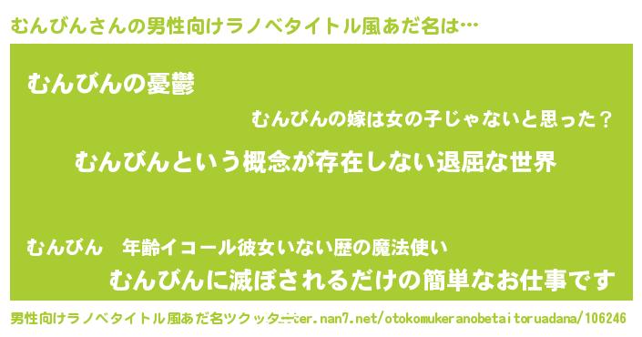 | 胡散臭い通販商品みたいなあだ名 | 『来世でも幸せになれる健康食品…その名も「むんびん」』 |