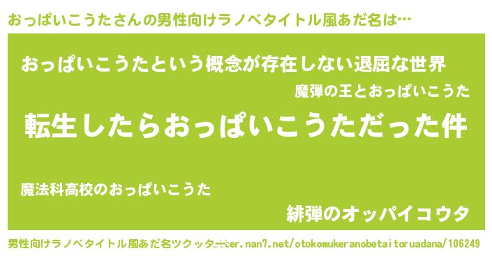 | 胡散臭い通販商品みたいなあだ名 | 『来世でも幸せになれる健康食品…その名も「おっぱいこうた」』 |