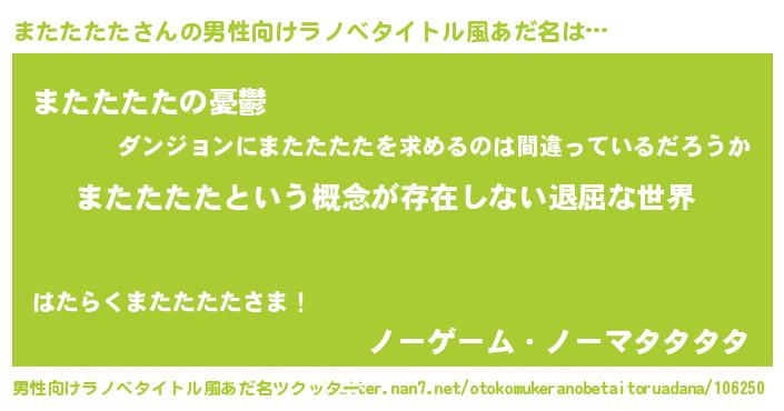 | 胡散臭い通販商品みたいなあだ名 | 『絶対に幸福をもたらす水素水…その名も「またたたた」』 |